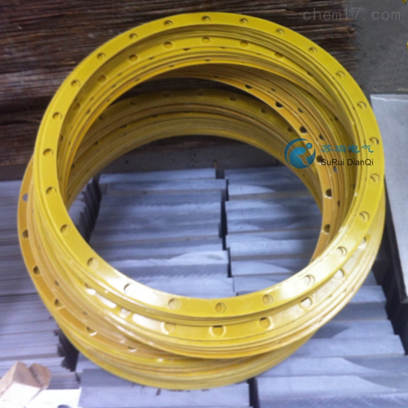 环氧树脂法兰是由环氧树脂绝缘纤维层压板为基材, 经车床、磨床冲床等机械加工而成的垫圈.