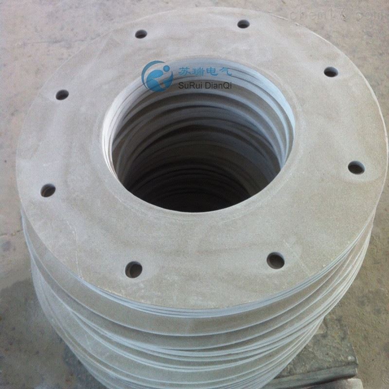 二苯醚法兰垫是由电工用无碱玻璃布浸以二苯醚树脂经加热卷压烘焙而成,具有较高的机械和介电性能,适用于电器设备中作绝缘结构零部件。